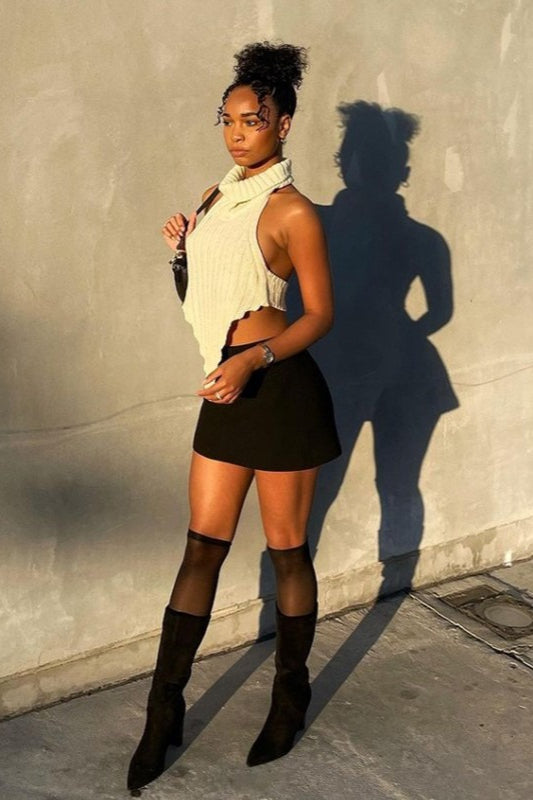 • Fit: Straight Fit • Length: Cropped • Composition: Acrylic • Details: Backless