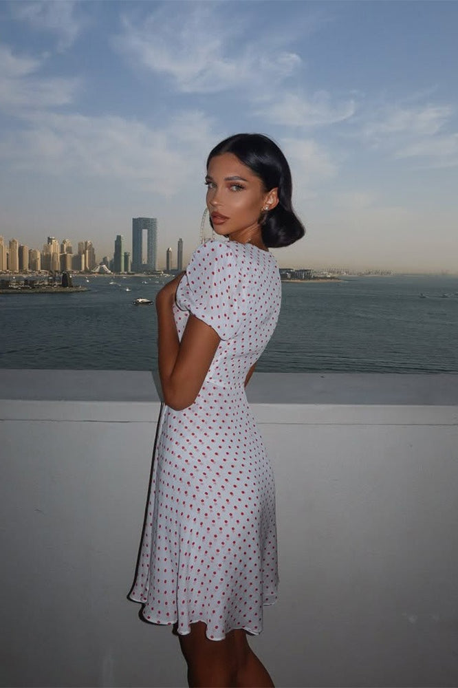 Decrease quantity for Polka Dot Bow-Detail Mini Dress