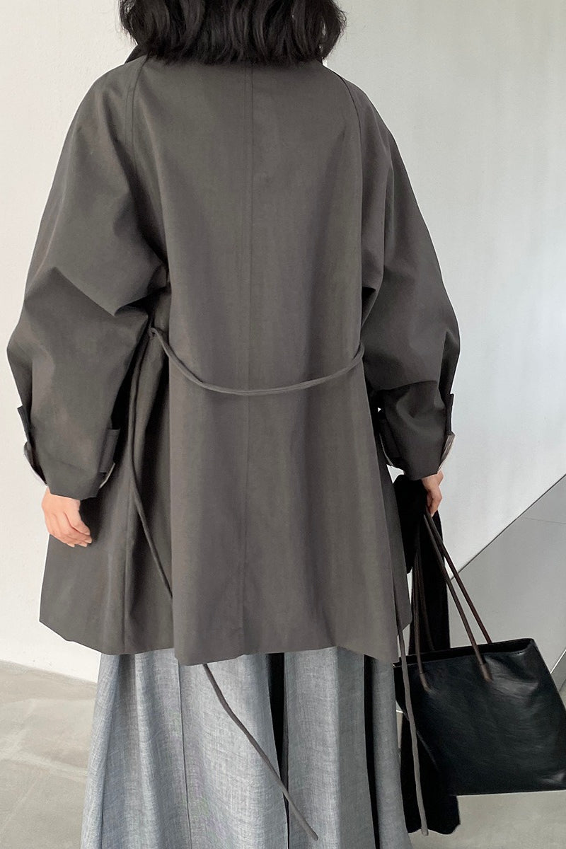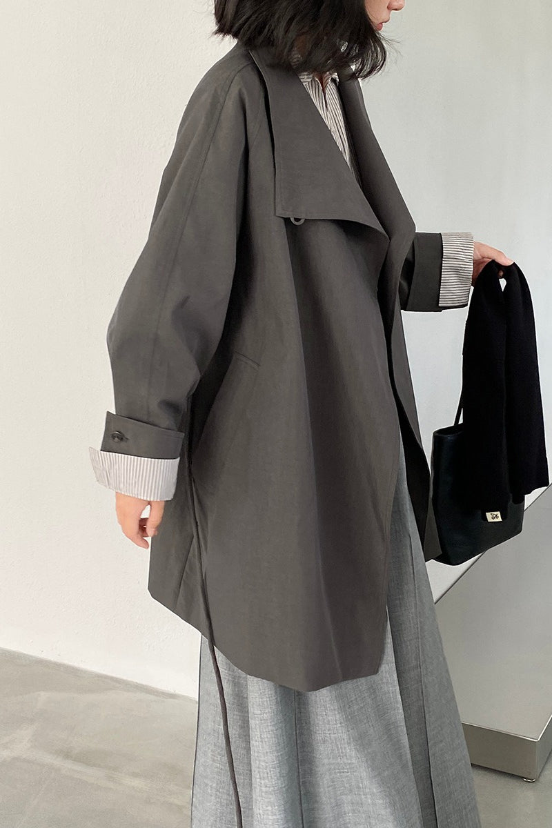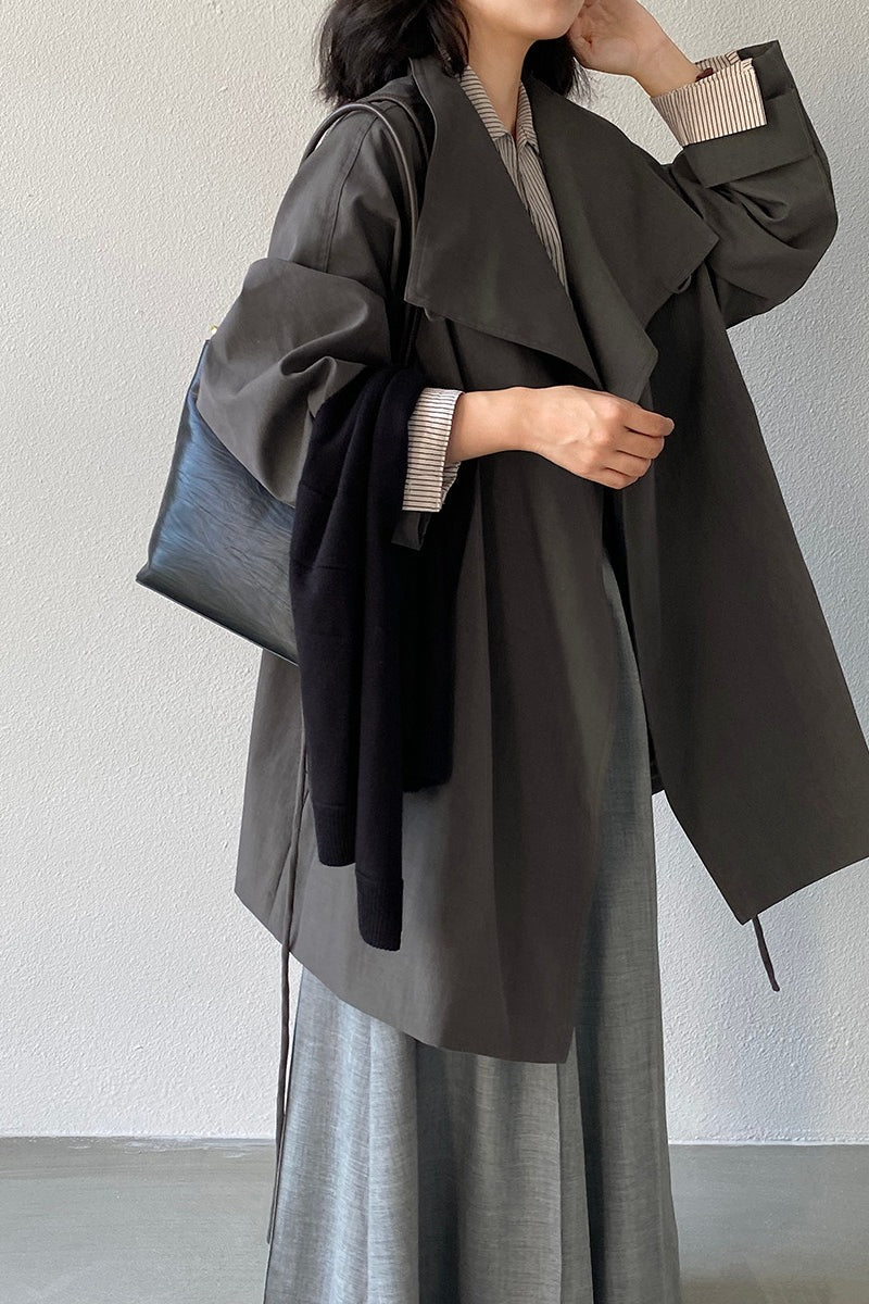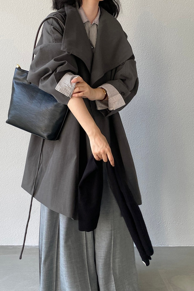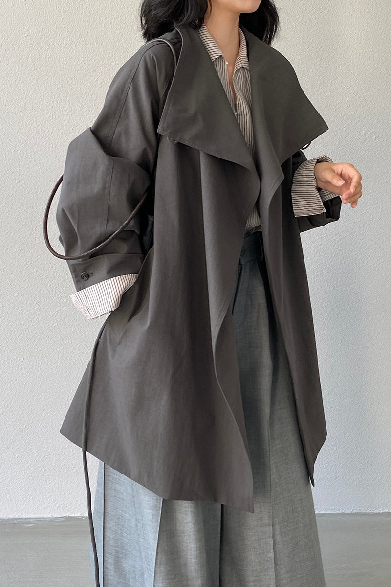 Lapel Trench Belted Midi Overcoat