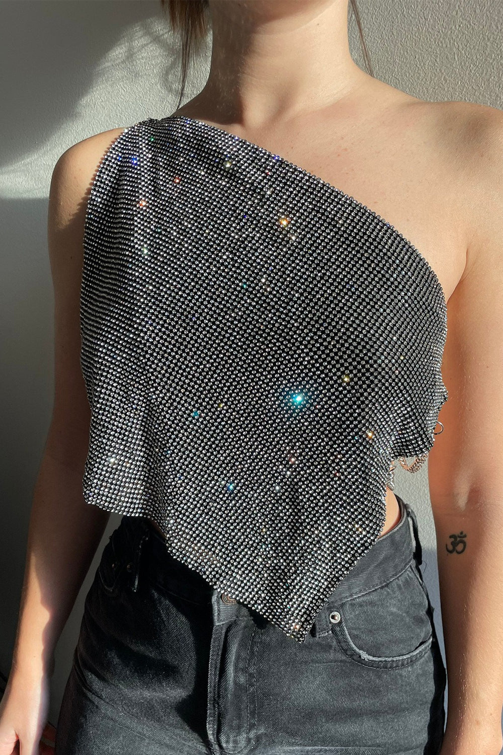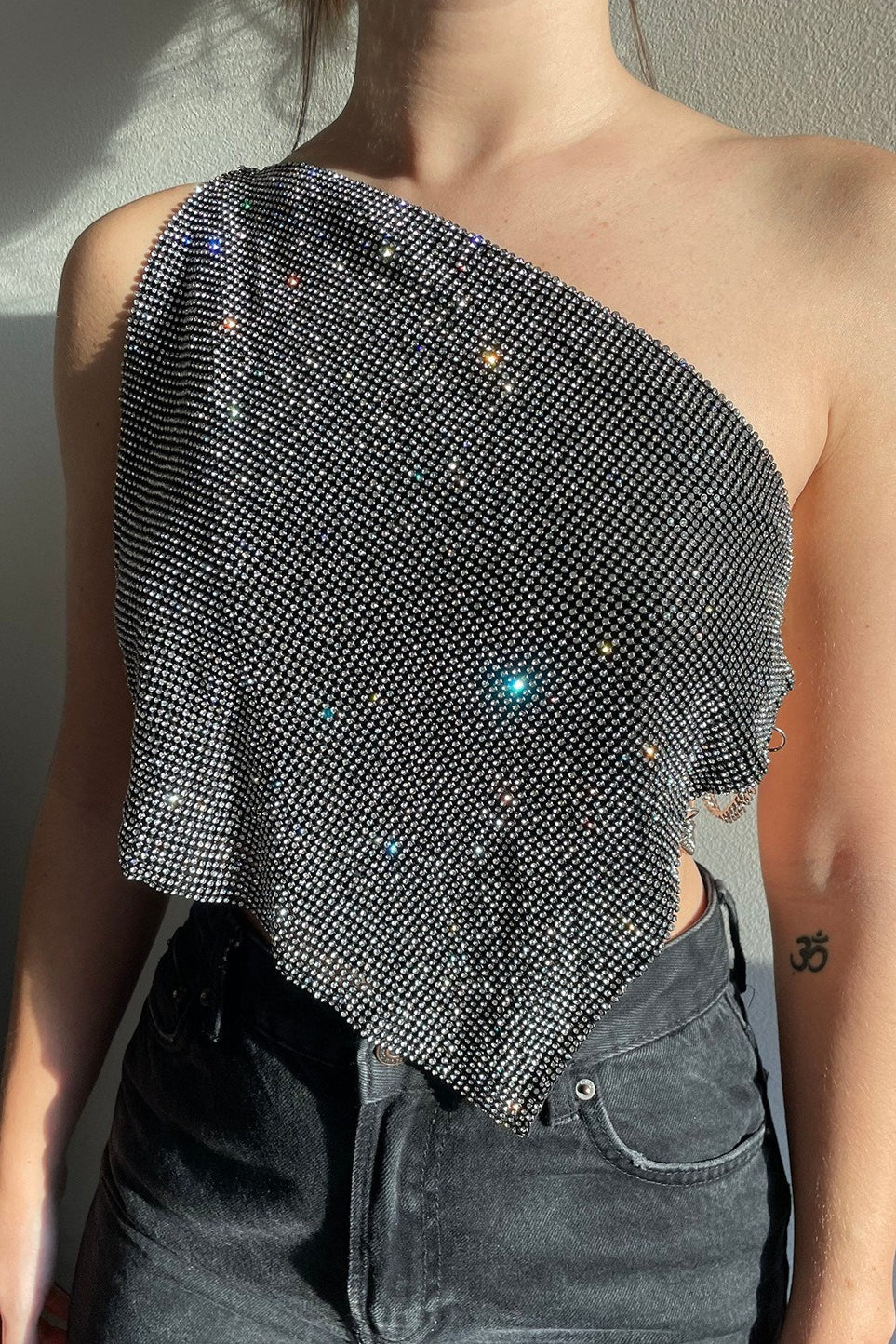• Fit: Asymmetric Fit • Neckline: Asymmetric Neckline • Composition: Metal, Glass • Details: Sequins