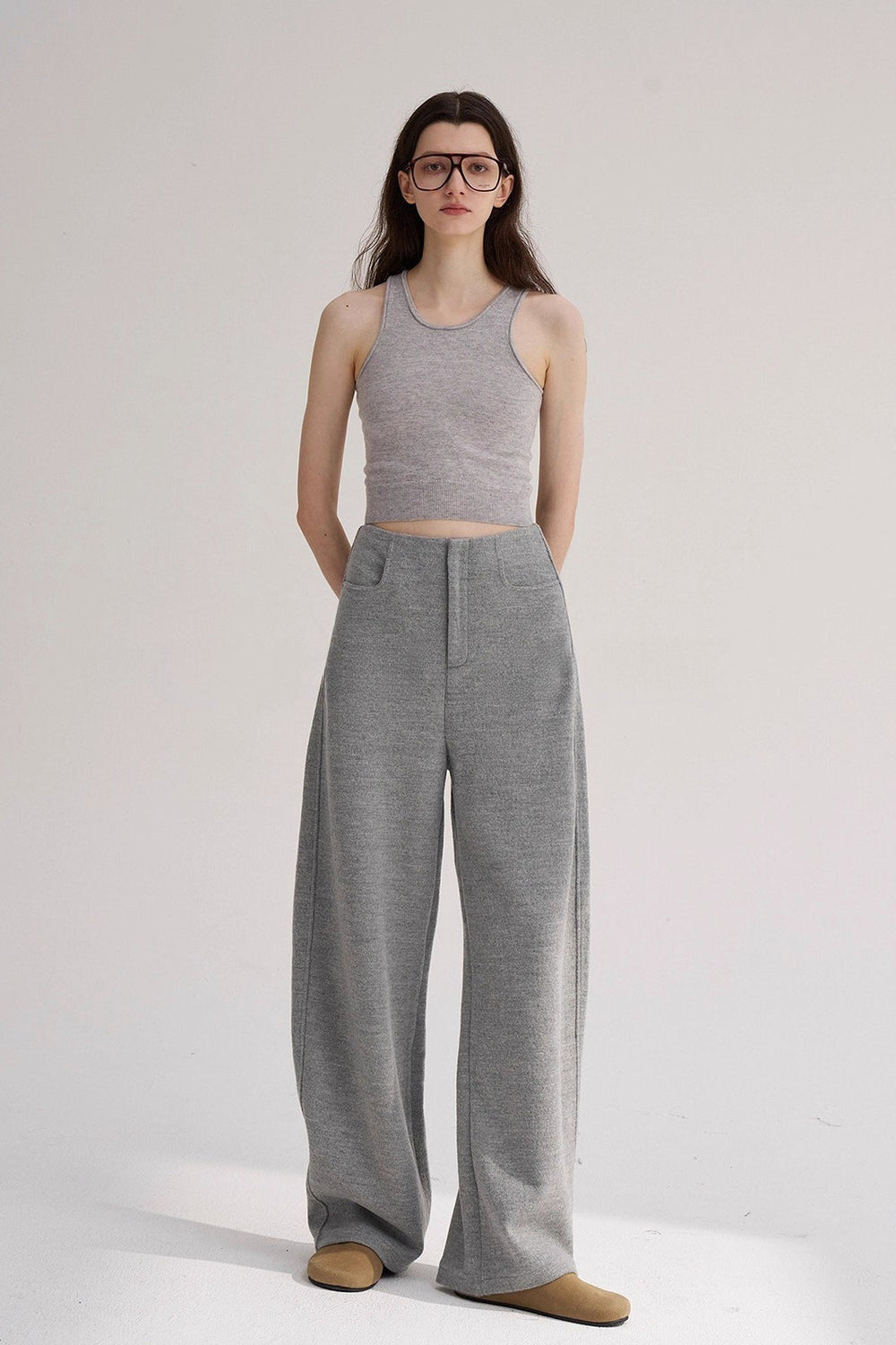 • Waist Type: Natural Waist • Clothing Type: Flared Pants • Composition: Wool, Spandex • Details: Solid Color, Pockets