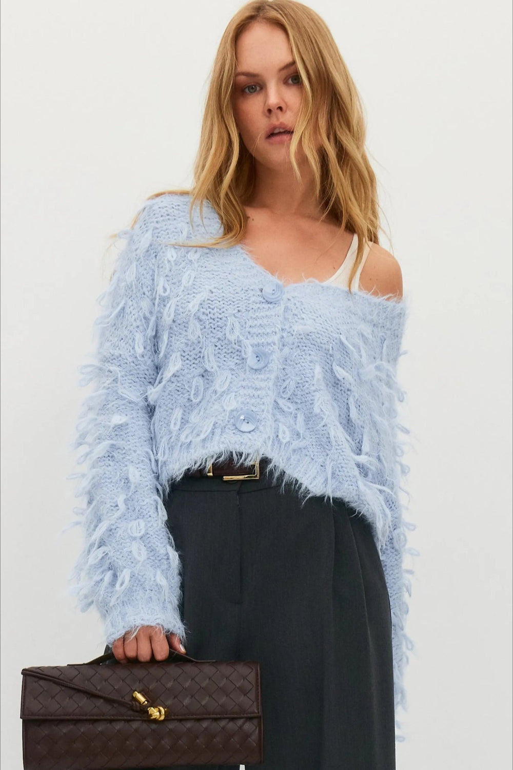 Slouchy V-Neck Tasseled Loose Solid Sweater