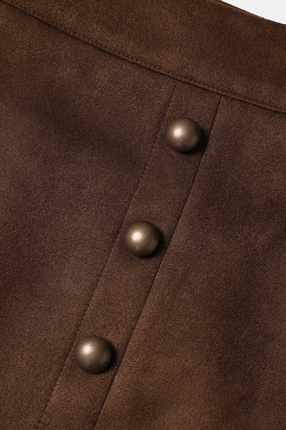 • Clothing Type: A-line Skirt • Dress Length: Mini • Composition: Suede • Details: Zipper
