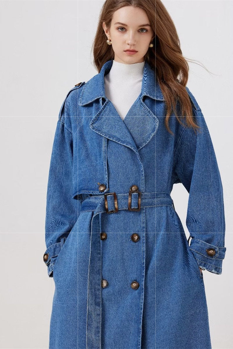 Vintage Denim Long Line Duster Overcoat