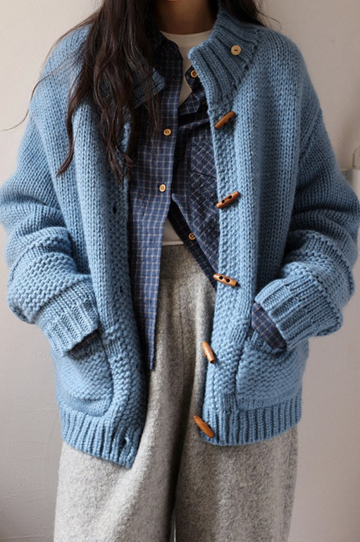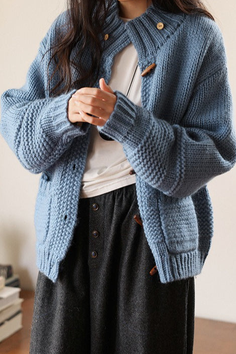 • Fit: A-line Fit • Neckline: Other • Sleeve Type: Other • Sleeve Length: Long Sleeve • Details: Solid Color, Buttons • Composition: Wool